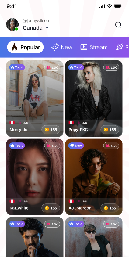 Allowing users to go live and engage in real-time video interactions with potential matches.